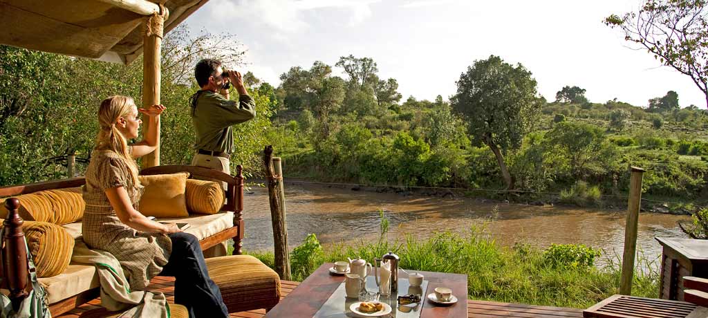 Sanctuary Olonana is a small exclusive camp located on a private stretch of the Mara River, at the foot of the impressive Siria Escarpment. Accommodation is in fourteen huge canvas pavilions with en-suite bathrooms, floor to ceiling mosquito netting, solar lighting and large verandas overlooking the river where the hippos wallow. Each tent features a private veranda for game viewing, reading or simply absorbing the magical scenery around you. The main dining room and veranda also command views over the Mara River and offer the perfect setting for after dinner star gazing. There is a swimming pool and our mini-spa is a treat. Here, in the middle of the African bush, guests can experience traditional African remedies alongside French marine therapies from Thalgo.