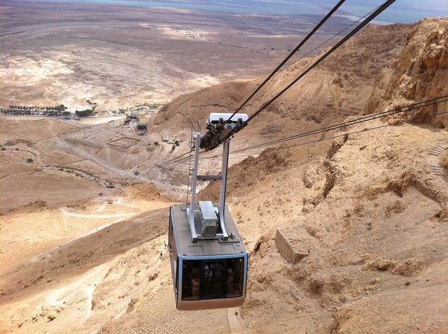 you continue by cable-car up to the last stronghold of the Zealots and see Herod's palaces, baths etc. Some 2000 years ago, Roman legions stormed one of the two paths to the top of this sandstone mountain to reach the Jewish Zealots headquartered there.