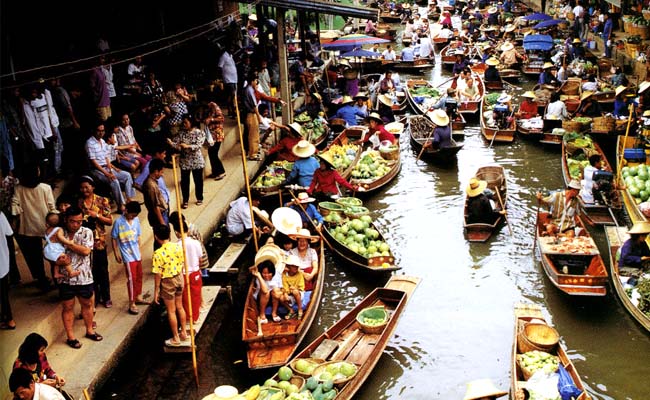 At 5 AM, meet your guide in the hotel lobby for a 45 minute boat ride to Noi-Khlong Om-Bang Khu Wiang Floating Market. From there it is a 10-minute boat ride to the market. If boats don't suit you, no worries as taxis and tuk-tuks are available for hire at the market.