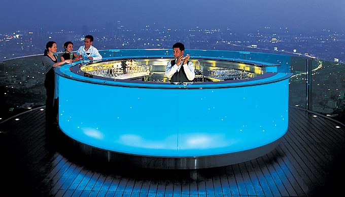 Breeze was designed to revolutionize the Asian style seafood-dining scene in Bangkok, taking it to a gourmet level. At Breeze, a semi open-air restaurant on the 52nd floor, it's not just the Asian cuisine that embraces the pinnacle of grandeur, but also the design, ambience and service. Seating is high above the sea level. The view is a bird's eye glimpse of Bangkok and the Chao Phraya River that you can admire from the open-air terrace or a spectacular glass sky- bridge suspended mid-air.