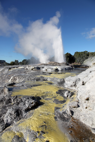 many major attractions to choose from including: Whakarewarewa, Rainbow Springs, the Buried Village, Agrodome Farm Show, beautiful gardens, art galleries, hot natural thermal pools, sheep-shearing demonstrations and wildlife experiences. For lunch, enjoy fine food and a scenic setting at a beautiful lake near Rotorua.