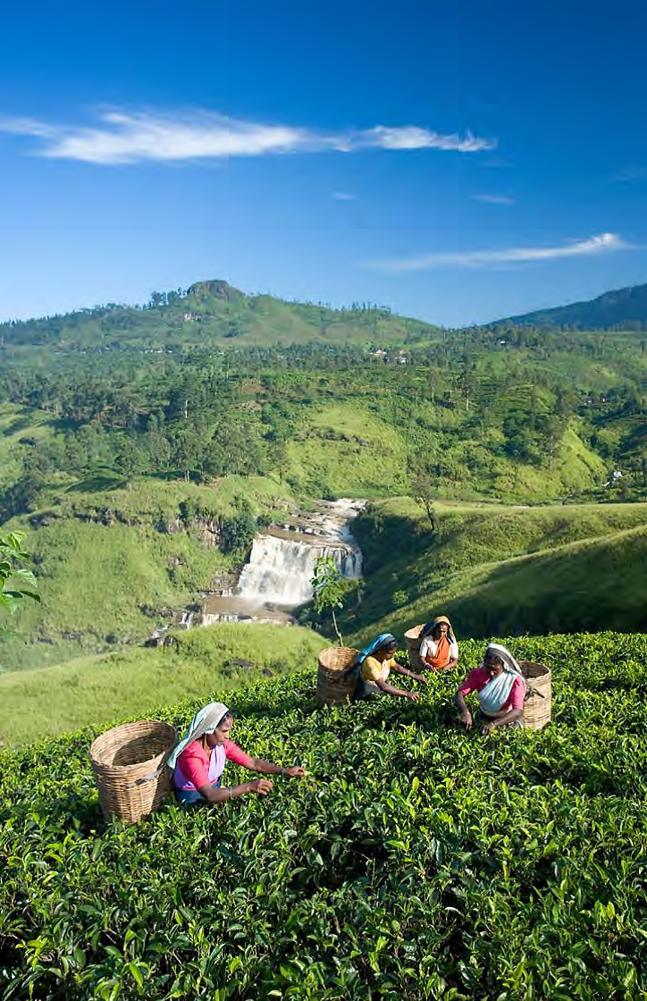 to Hatton is filled with the most dramatic and enchanting scenery in Sri Lanka, climbing its way through bright green hills blanketed in tea, lush valleys, misty mountains, and rushing waterfalls. You’ll also catch your first glimpse of the 7,360-foot Adam’s Peak, Sri Lanka’s most holy mountain and spiritual pilgrimage for Buddhists, Muslims, and Christians alike. You’ll begin to feel the distinct and pleasurable change in temperature as you slowly ascend toward your final destination. Nestled into the heart of tea country, you’ll find the classic colonial bungalows of Ceylon Tea Trails. These secluded bungalows were home to the British tea estate managers. They are meticulously restored and elegantly appointed, set amidst colorful gardens and stone pathways. Upon arrival, you’ll be welcomed with high tea and homemade scones on the veranda, where you can relax and look out upon magnificent views.