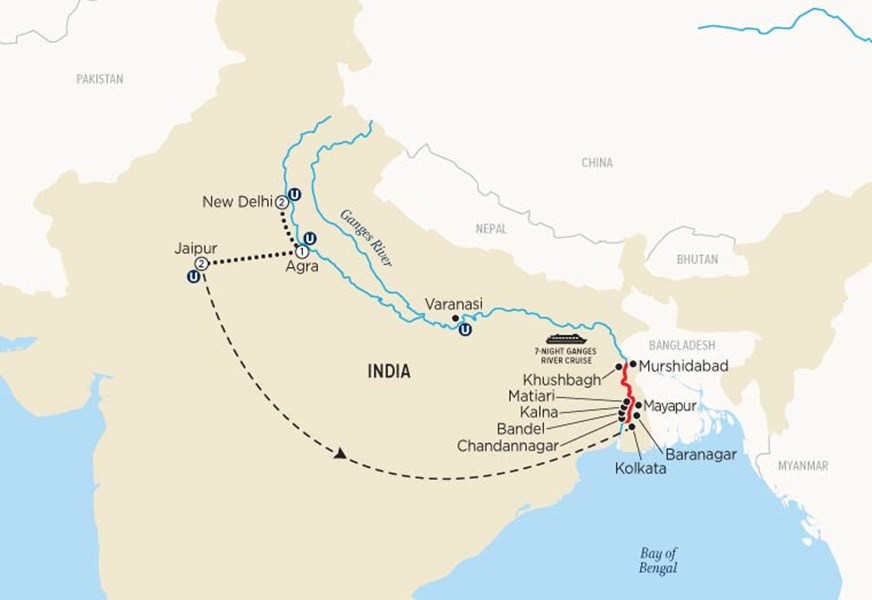 The former capital of the Raj, Kolkata offers intriguing glimpses of the “old India” of the British colonial period, including grand architecture such as the Writers’ Building, High Court, and General Post Office. Observe these and other key sights on your city tour, plus visit Kolkata’s oldest Anglican church and the Victoria Memorial Hall, a museum boasting India’s largest collection of colonial artifacts. Return to the ship for lunch and a scenic cruise that passes a number of former colonial settlements. Later, take an excursion to Bandel to visit Hooghly Imambara, a mosque that’s a triumph of Bengali architecture. Ganges Voyager II - BLD