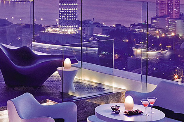 Mumbai's rooftop lounge. Covering the entire rooftop, this 34th-floor open-air lounge provides panoramic city and sea views and creates an atmosphere of chic relaxation high above the bustling streets.