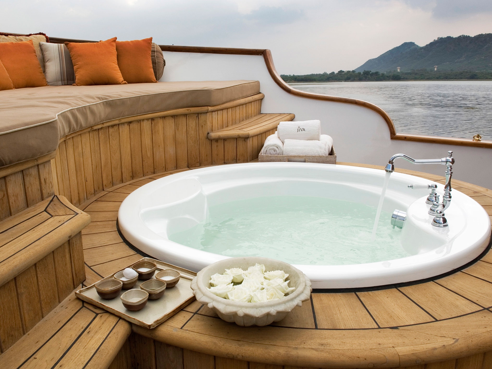 Returning to beautiful Taj Lake Palace, enjoy the remainder of the afternoon relaxing alongside its charming swimming pool or soaking in the Royal Jiva Spa Boat's Jacuzzi afloat on Lake Pichola.
