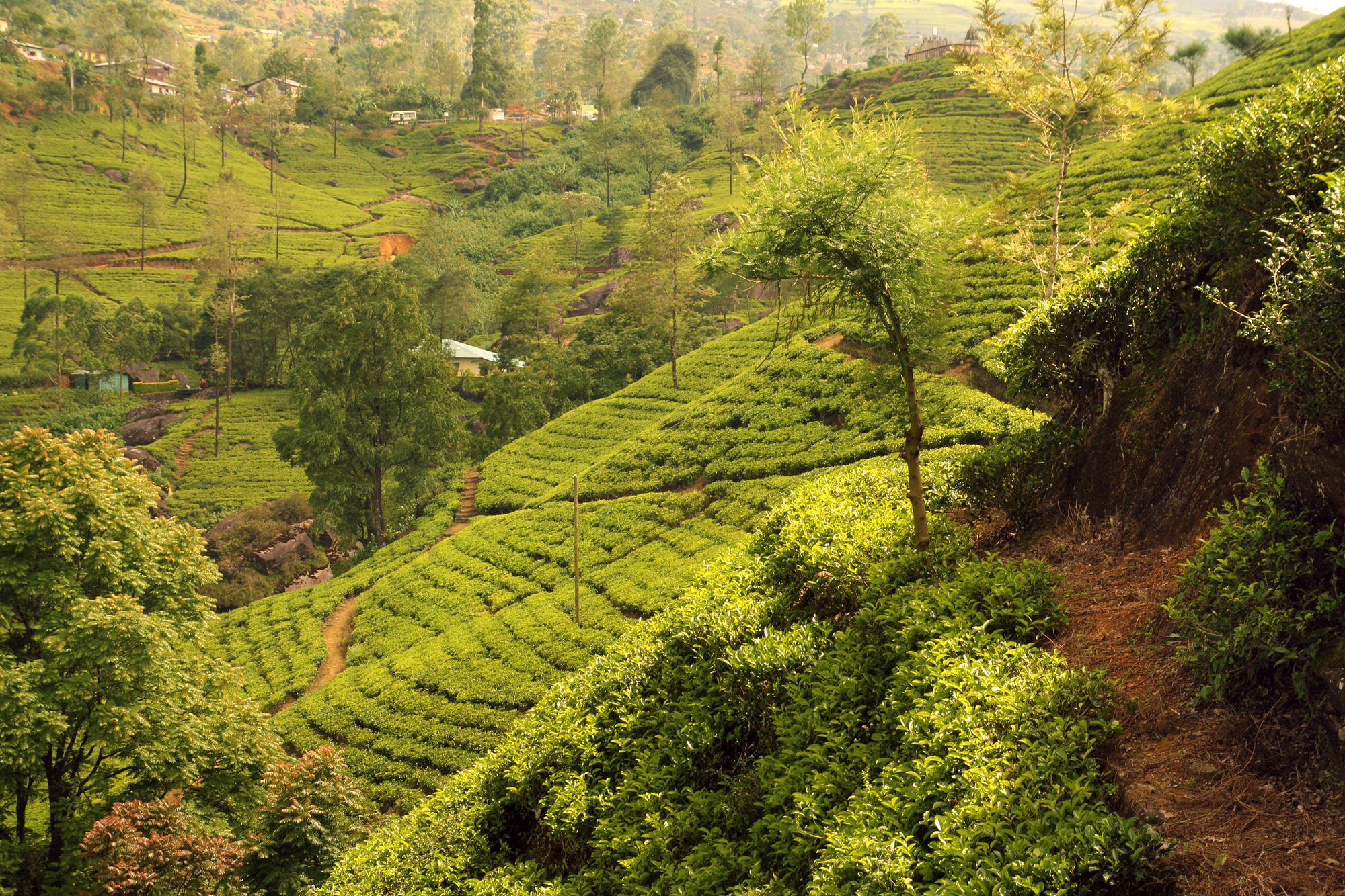 Thanks to its setting in the Lesser Himalaya at 6700 feet, Darjeeling astounds visitors with fantastic sunrises and spectacular mountain scenery. It's worth driving up to Tiger Hill (8500 feet) in the early morning to have the best chance for spectacular alpine views, including of Mount Everest (just over 100 miles away), Kangchenjunga (the world's third-highest mountain at 28,169 feet) and Makalu (the world's fifth-highest mountain at 27,838 feet). While in Darjeeling, you also get a sense of its former colonial grandeur, mountaineering history, and colorful contemporary life. The surrounding hills are lush with tea plantations, originally established by the British in the early 19th century. The growers developed fermentation techniques that created the distinctive Darjeeling tea that is one of the planet's most popular black teas.