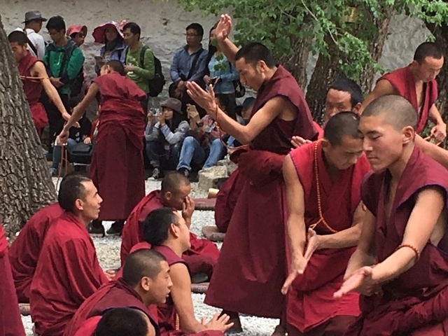 You will tour the Tashomchan and then sit down to watch the rousing display of debating which occurs most afternoons. Here teams of young monks quiz each other in matters of esoteric philosophy. The debating can become heated and you will see the questioning monk slapping his hands and gesticulating - meant to indicate his response to his opponent’s answers. While it may appear that the monks are “playing to the crowd” this is a time honored tradition.