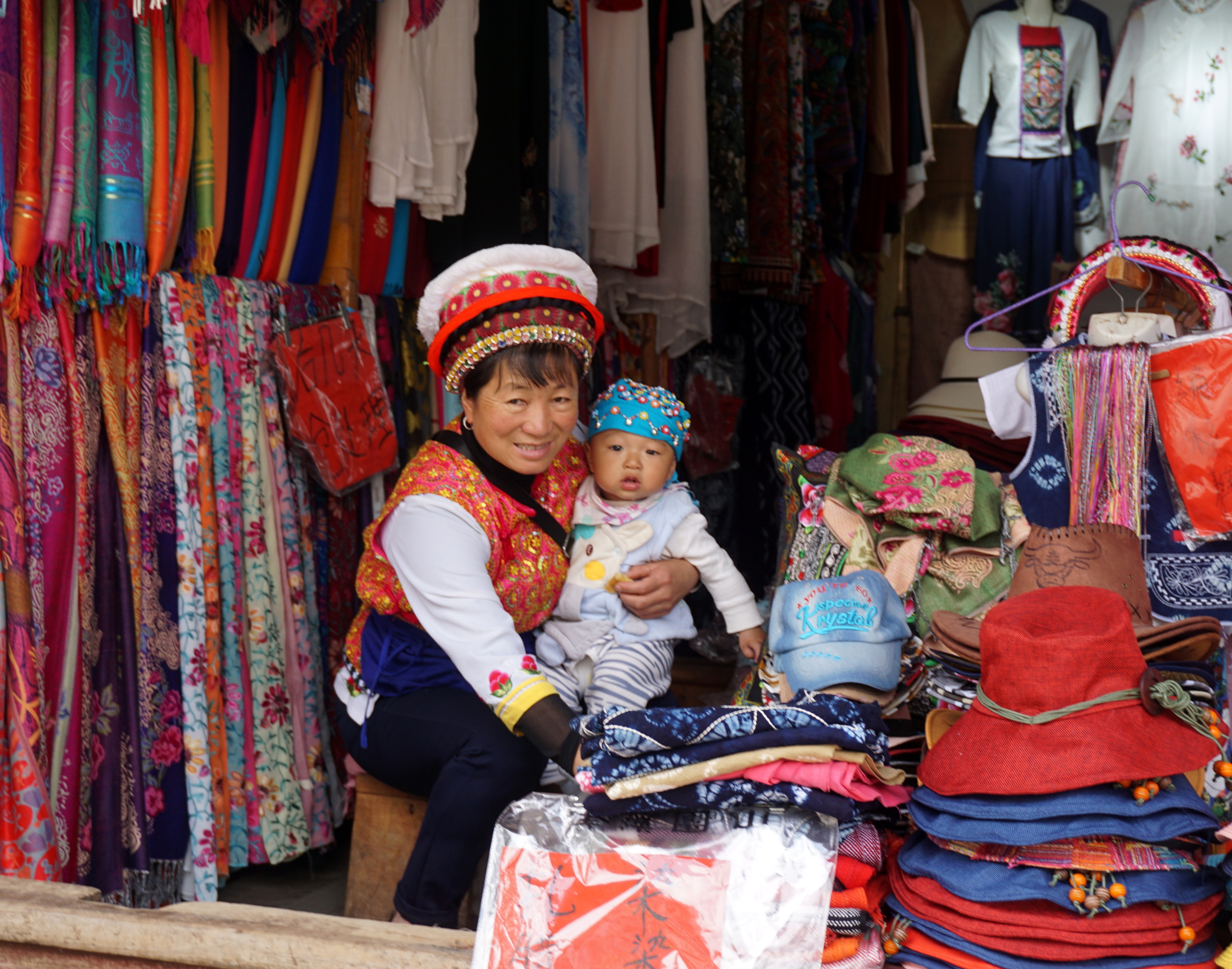 Two important historic landmarks make Shigu nationally famous and now draw a growing number of Chinese travelers. One is the Memorial to the Red Army Crossing of the Yangzi River in the winter of 1934 - 1935 during the Long March. Under heavy pressure and attack from Chiang Kai Shek’s KMT forces, a group of Red Army soldiers were assisted by local Naxi settlers in crossing the winter waters of the Yangzi. This act of friendship is commemorated by an exquisite bronze sculpture that honours the crossing and those Naxi who aided the Red Army soldiers. The other memorial is the Stone Drum (Shigu) from which the village gets its name. This white marble piece is believed to have been carved in the mid-16th century to remember a battle fought between an allied force of Han Chinese and Naxi against an invasive force from Tibet. The Han Naxi alliance prevailed but the memorial, while recognizing the victory, is a lament against the destructive effects of battle. The “Tai Ping Ge” is a “Song for Peace” - a call for men to live as brothers. A visit to Shigu should also include a walk through its daily produce market that sets up along the road at the entrance to the Red Army Memorial. The market is a bustling affair that draws not only local Naxi traders and farmers but also groups of Yi and Tibetan women who come down from the highlands to sell their products in the local market.