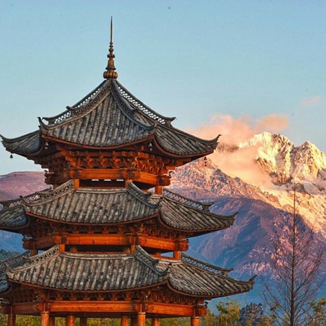 Then visit Wangulou Pagoda - a monumental building located in the ancient city of Lijiang. The tower is an example of wooden Dougong architecture with sets of brackets on top of the columns supporting the beams within and the roof eaves without. A set that is cushioned with trapezoidal block is called Duo, and one that consists of tiers of outstretching arms is called gong. The tower has five stories and five tiers of eaves. The top story has 13 angles, representing the 13 peaks of the Jade Dragon Snow Mountains. Painted inside the tower are 2,300 auspicious patterns, representing the harmony and unity of the 23 ethnic groups living in Lijiang. The colourful murals in the tower are redolent of the traditional Dongba culture of the Naxi people. Climb to “Wangu Lou” Tower to enjoy a panoramic view of Lijiang Old Town.