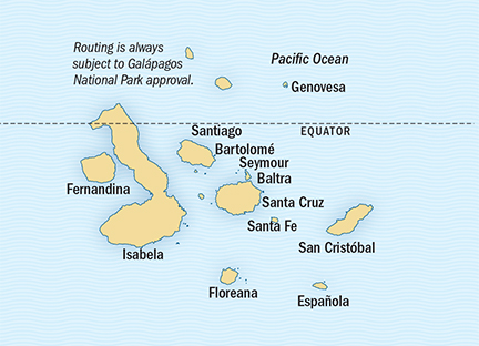After the 1 1⁄2-hour flight to the Galápagos, we’ll immediately board the National Geographic Endeavour II. Over the course of the week, our exact routing depends on the National Park Service.