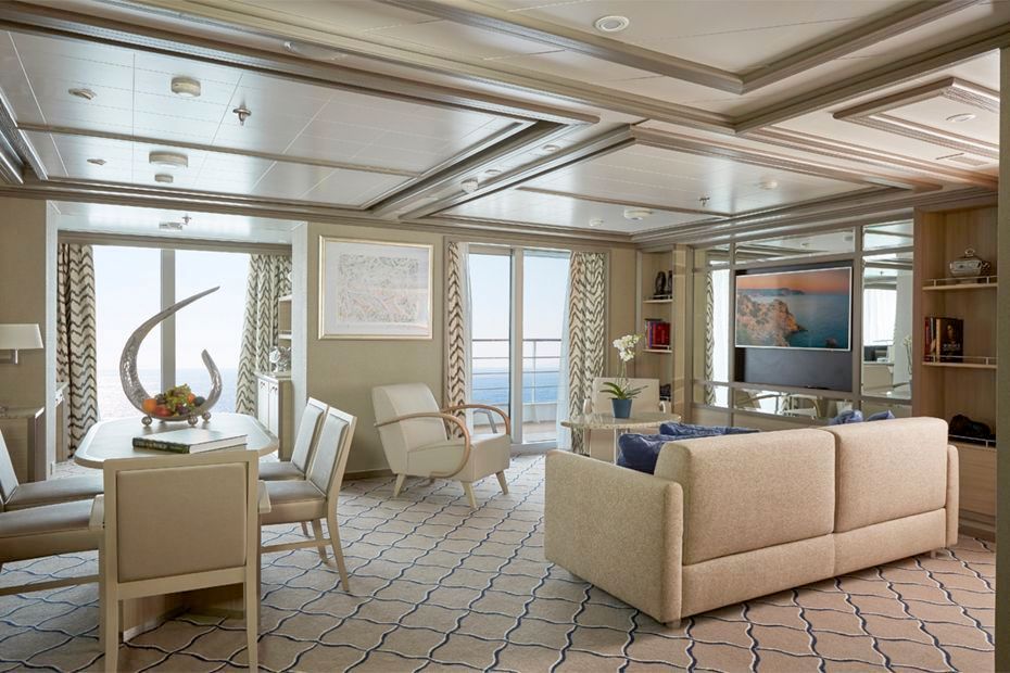 All suites will feature balconies and butler service. Silver, Royal and Grand Suites all will offer one- or two-bedroom configurations. The highest category - the four Owner's Suites - measure 947 to 1,055 square feet with 129-square-foot verandas and feature bedrooms separate from living and dining areas. Entry-level balcony suites measure 387 square feet (including a 64-square-foot private balcony).
